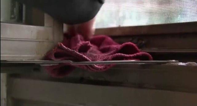 4.把切開(kāi)的百潔布按照窗槽的大小放入,來(lái)回擦拭就可以了。